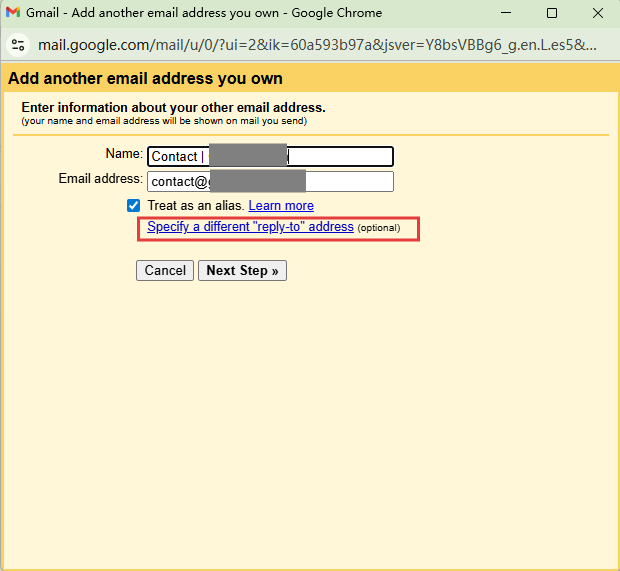 打开 Specify a different "reply-to" address,填入同样的邮件地址,这样代表回复的时候也是用这个地址。