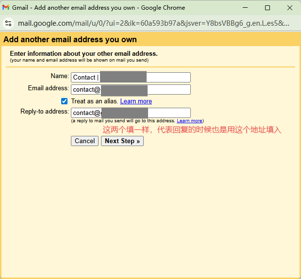 注意:这里的 Treat as an alias 可以不勾选,这样收件人收到此邮箱代发的邮件时,不会显示由谁代发这样的字眼,当然这远远不够,还需要支持域名设置 DKIM、SPF 等信息。