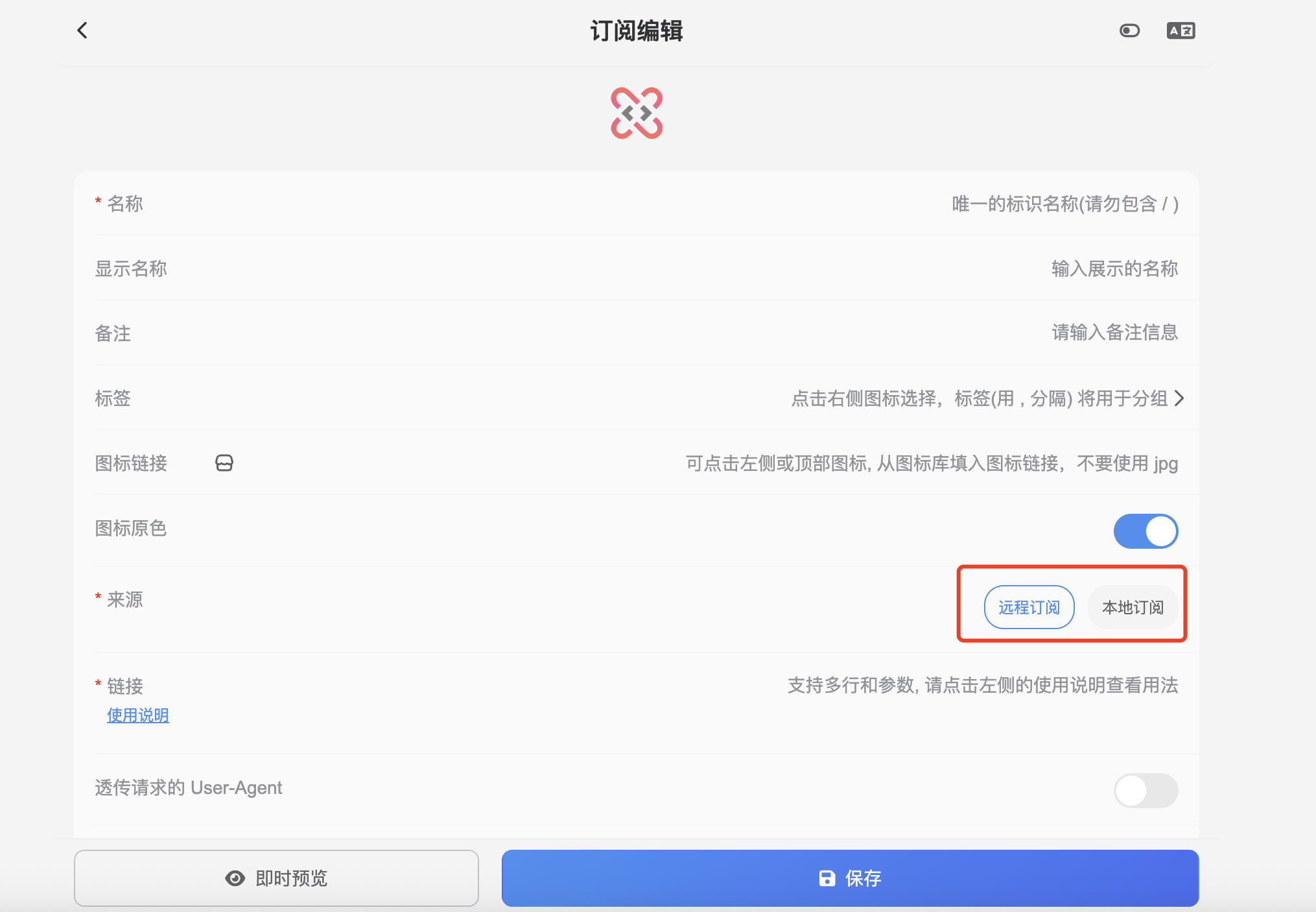 填入时选择本地订阅,如果是机场的链接,就选择远程订阅。
