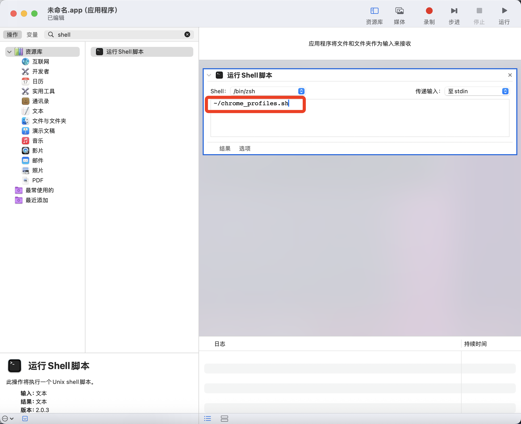 然后在左侧搜索 Shell 脚本,然后双击它。